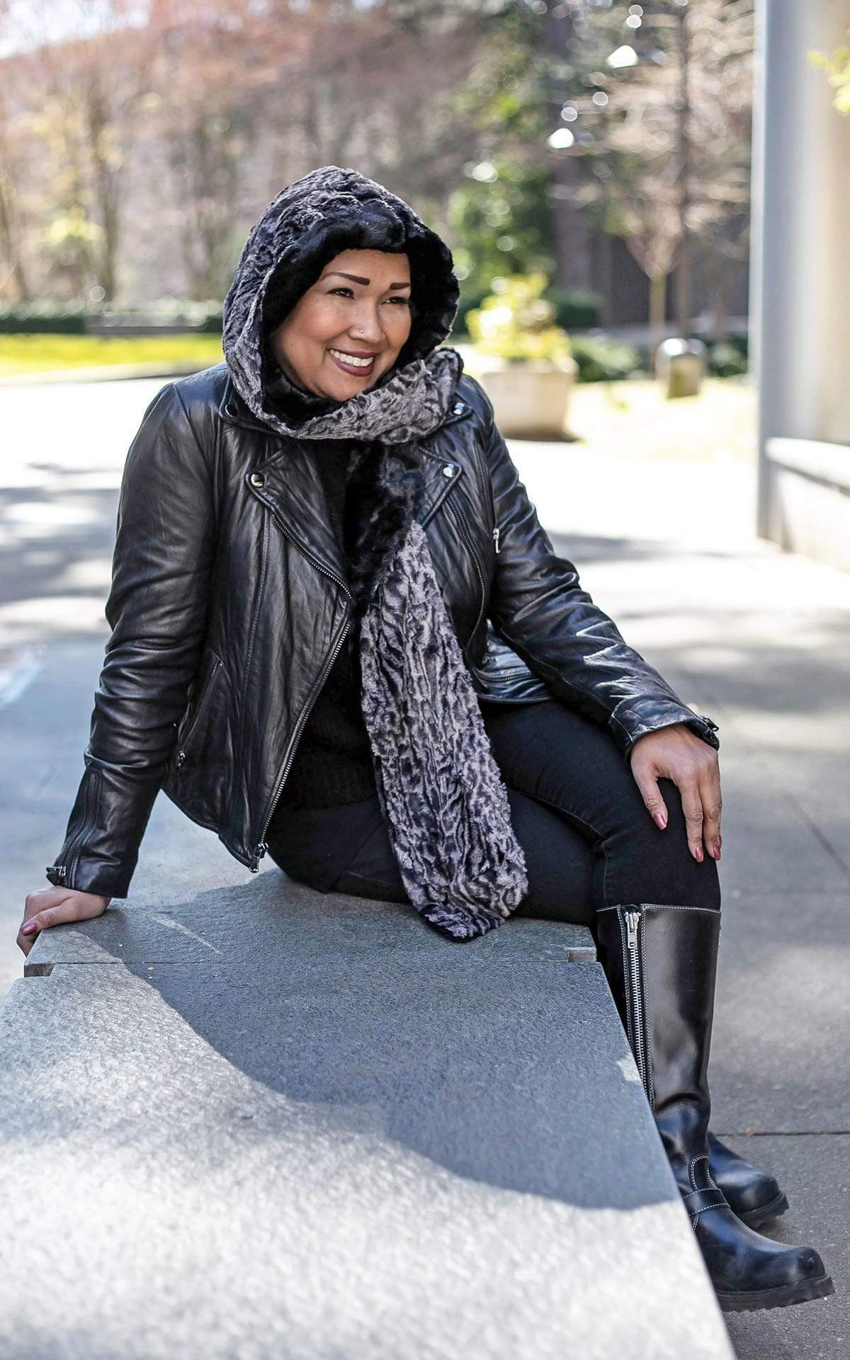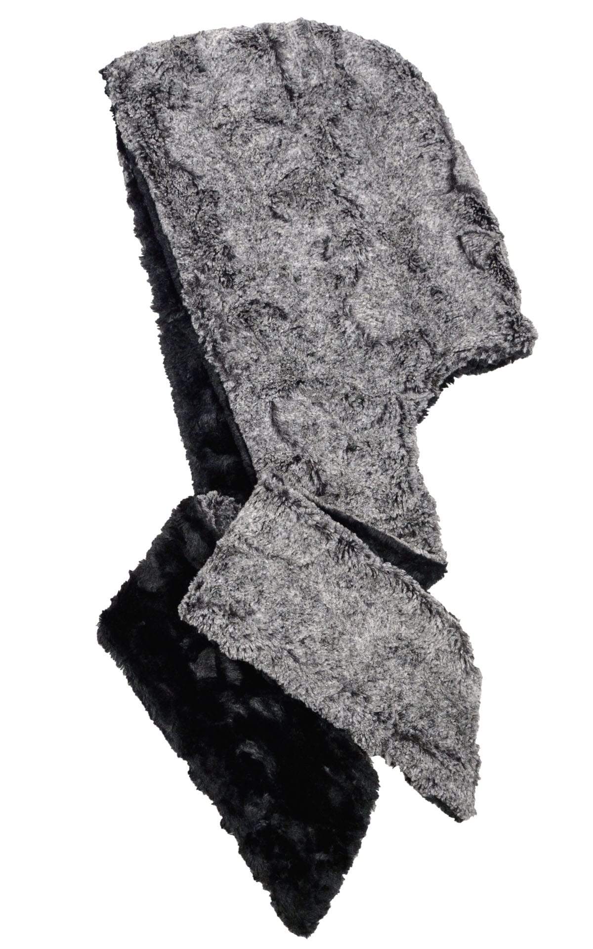 HOODY SCARVES, or snoods, are great to wear paired with a sweater or a coat without a hood. This is a hoodie and scarf all rolled into one. These faux fur hooded scarf options are very chic and comfortable. Hoodie scarves can be reversed and are available in solid or two-tone faux fur combinations. Check out long hair Fox Faux Fur scarf with hoodie options for some awesome fringe to trim your hood!