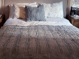 Cirrus Throws, handmade in Seattle, WA, USA, are available in three dreamy colors that bring the clouds into your home! We're excited to offer both Shadow, Honey and Blue Mist in our Cirrus Faux Furs (Standard Size and Larger available two-sided).