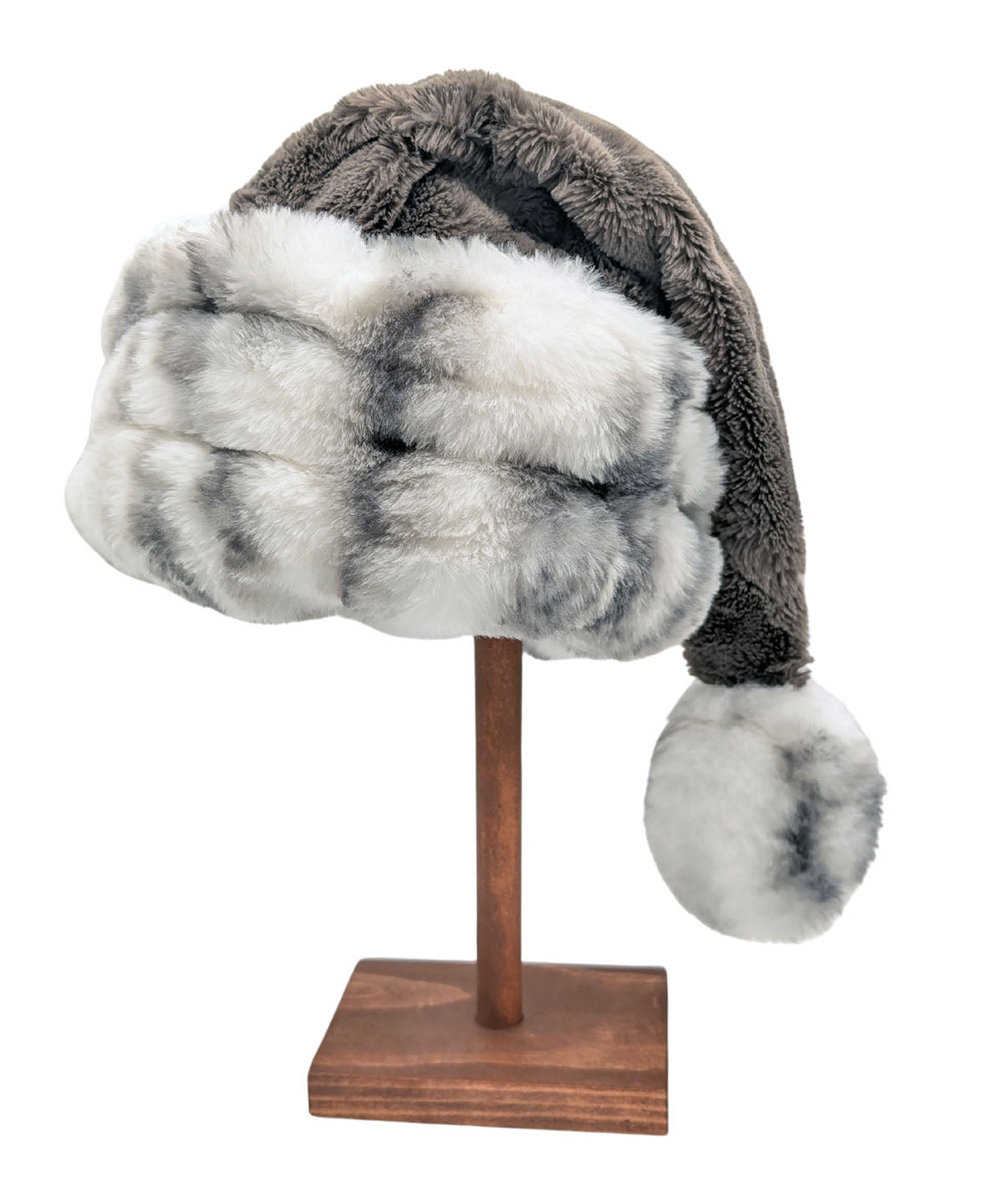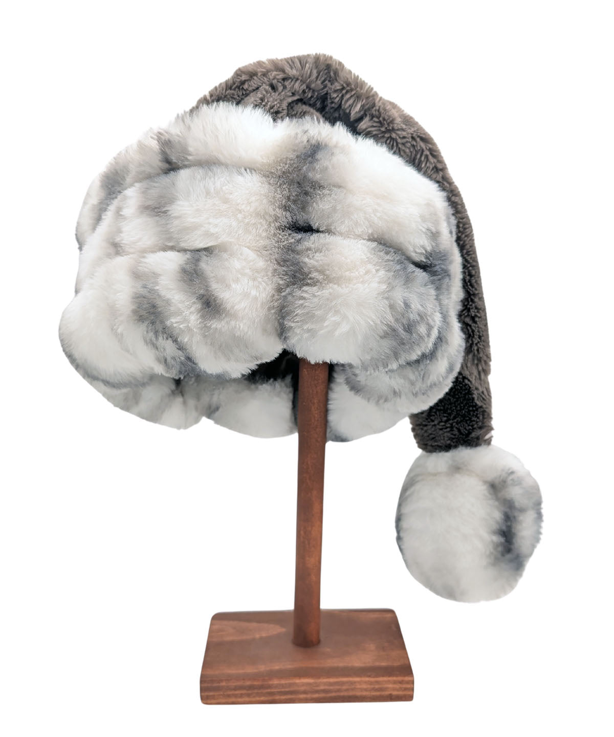 Pick a color that will compliment that holiday outfit you spent time picking out! Wear the elegant Black Velvet and Silver Tip Black Fox Santa Hat, or the flirty Ivory Fur with Berry Foxy Hat to make an impact. Retro Red Flannel and Classic Ivory Fur is the perfect choice for the traditional retro look. We have light, bright, and dark color combinations to give you the perfect festive outfit topper.